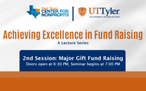 The East Texas Center for Nonprofits is excited to partner with the University of Texas at Tyler for a 3-part lecture series to help nonprofits meet their goals for fundraising.